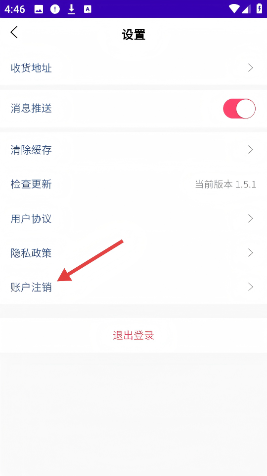 3、在设置页面,点击下方【账户注销】选项。