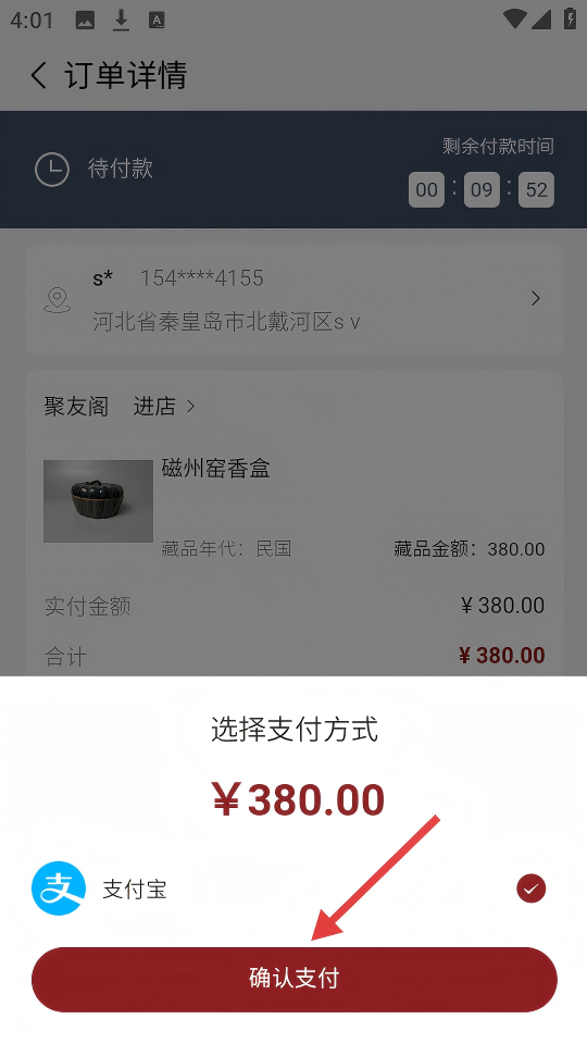 4、在选择支付方式弹窗中,点击【确认支付】,完成订单支付。