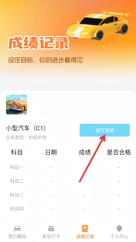 2、在成绩记录页面,点击【填写成绩】,进入成绩填写流程。