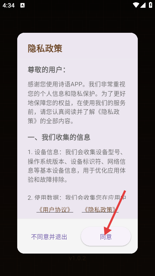 1、打开APP,在隐私政策页面点击【同意】,进入应用主界面。