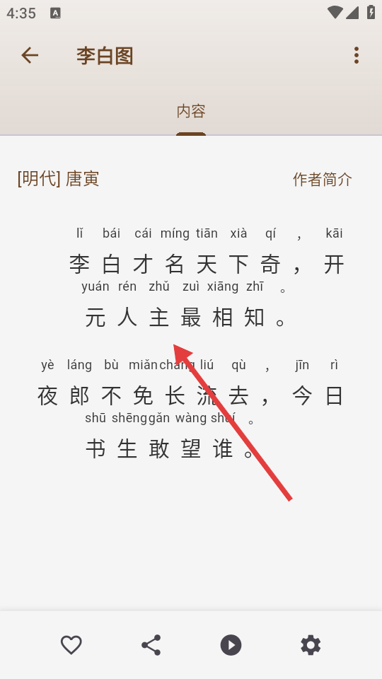 4、在诗词详情页,可阅读诗词内容、注释及赏析,还能进行收藏等操作。