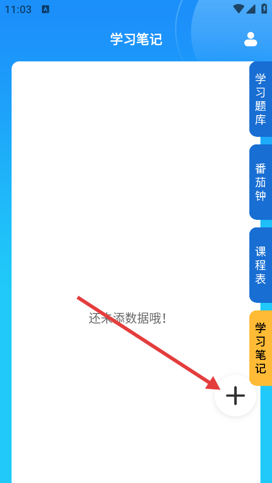 3、在学习笔记页面,点击右下角的“+”按钮,进入添加笔记页面。