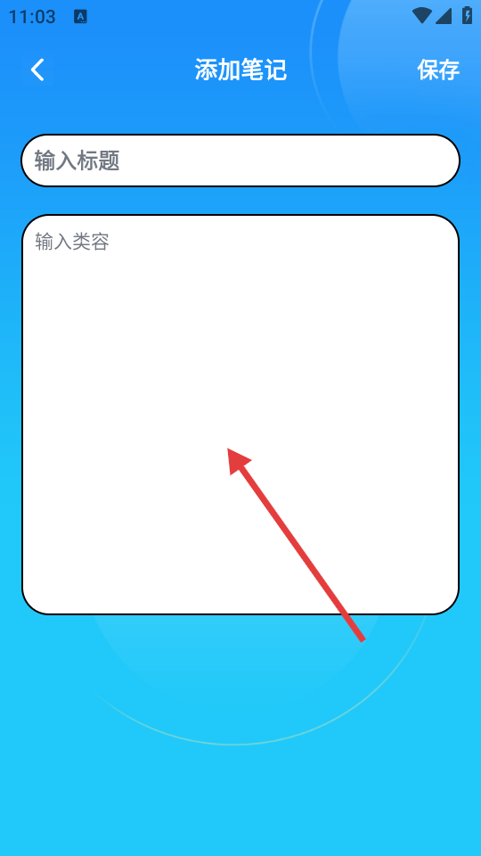 4、在添加笔记页面,输入笔记的标题与内容,完成后点击【保存】即可。