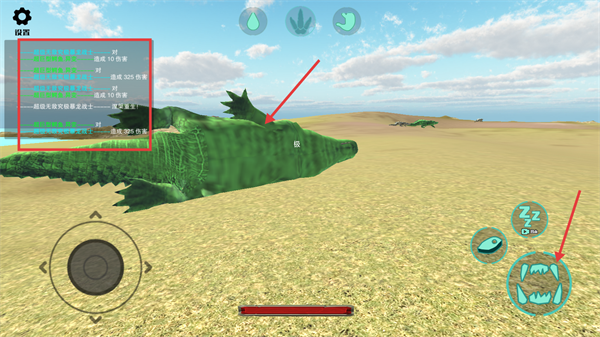 3、点击右侧攻击按钮,对【超巨型鳄鱼_异变】发起攻击。