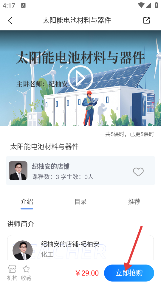 3、在课程详情页面,点击【立即抢购】按钮,进入确认订单页面。
