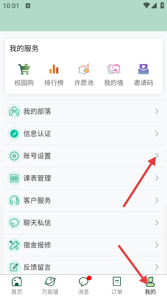 1、打开app,点击进入【我的】页面,选择【账号设置】。