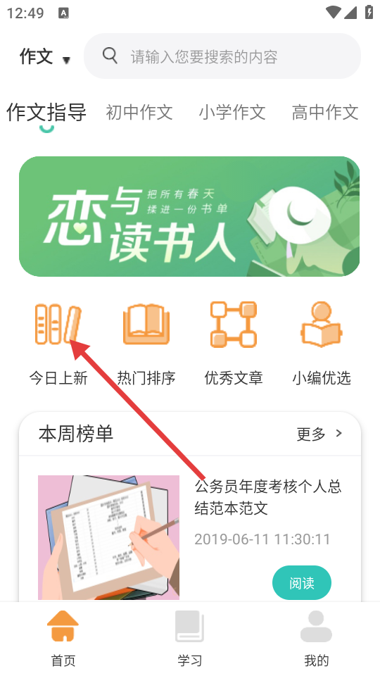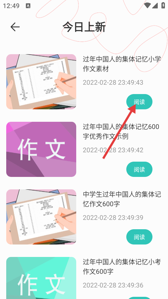 3、在今日上新页面,选择想要查看的内容,点击【阅读】。