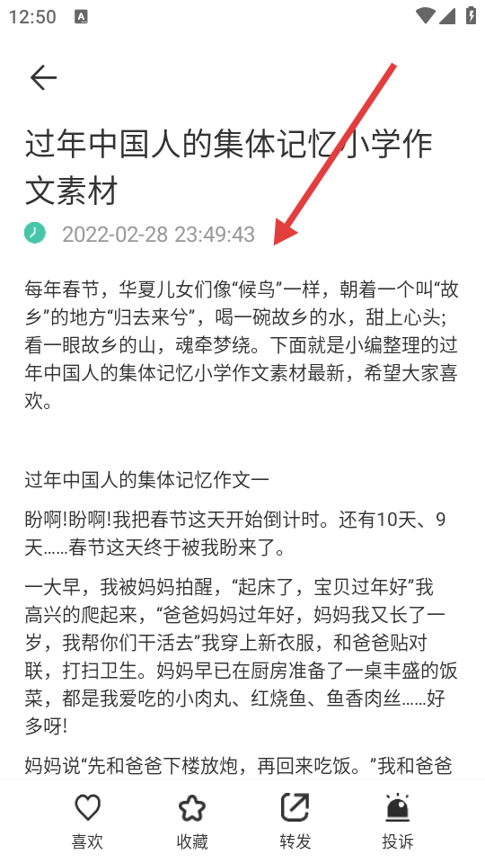 4、进入内容详情页,即可查看具体的作文素材内容。