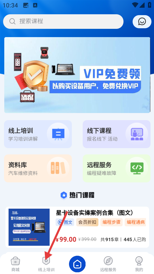 1、在首页点击底部【线上培训】,进入线上培训页面。