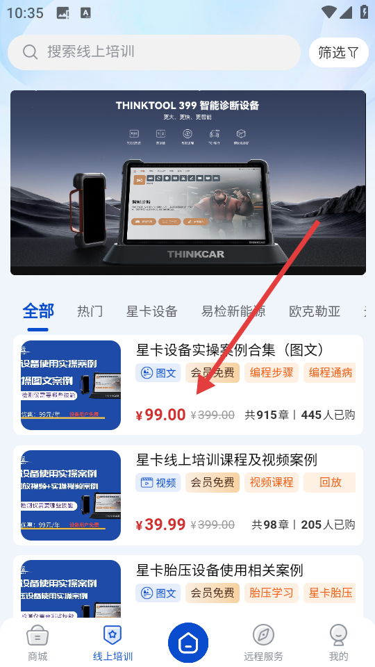 2、在线上培训页面,选择“星卡设备实操案例合集”课程,进入该课程详情页。