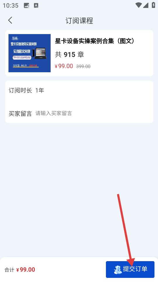 4、在订阅课程页面,确认订阅时长等信息后,点击【提交订单】,即可完成该课程的订阅操作。