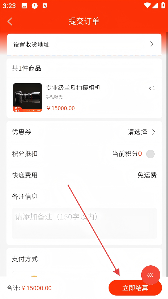 4、在提交订单页面,设置收货地址、选择支付方式等,点击【立即结算】,完成购买流程。