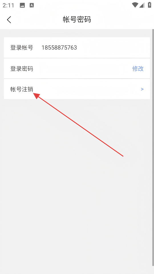 3、在“帐号密码”页面,点击【帐号注销】选项,触发注销确认提示框。