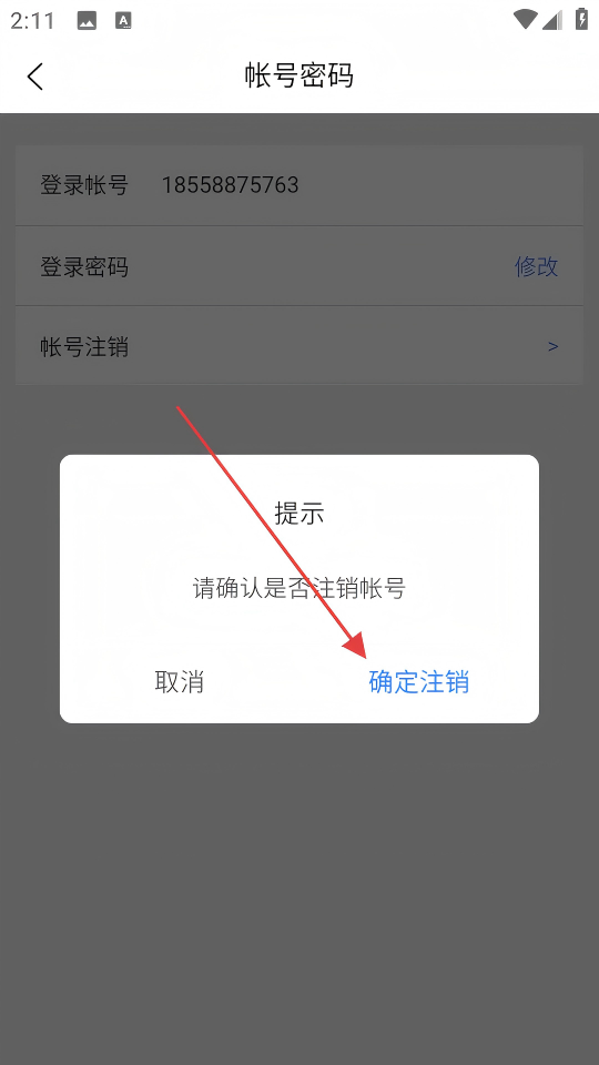 4、在提示框中,点击【确定注销】按钮,完成帐号注销操作。