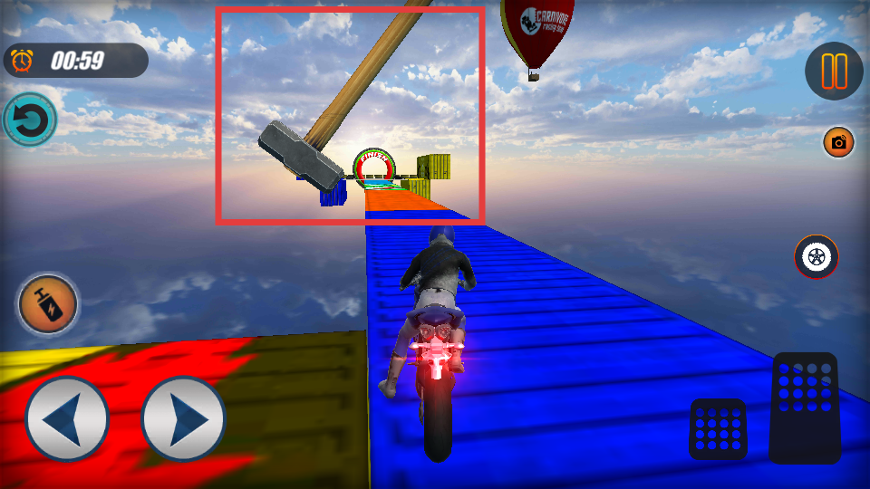 2、行驶中遇到红框内的【大锤子】障碍物,提前调整方向,巧妙躲避,防止碰撞影响进度。