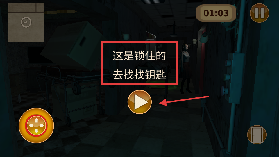 4、遇到锁住的门,按提示去其他区域搜寻钥匙,找到后即可解锁,继续探索。