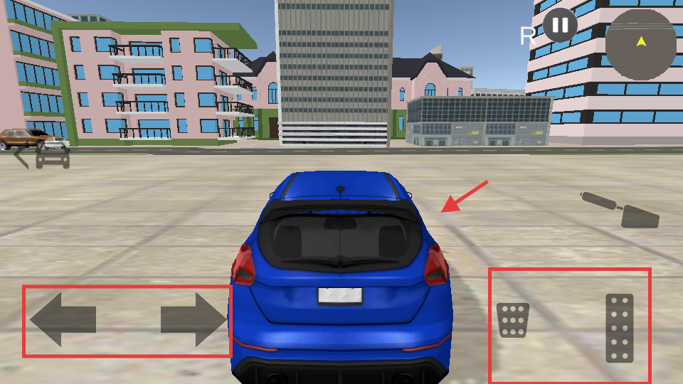 4、进入驾驶视角后,用下方方向箭头控制车辆转向,右侧踏板控制加速和制动,在场景中驾驶车辆。
