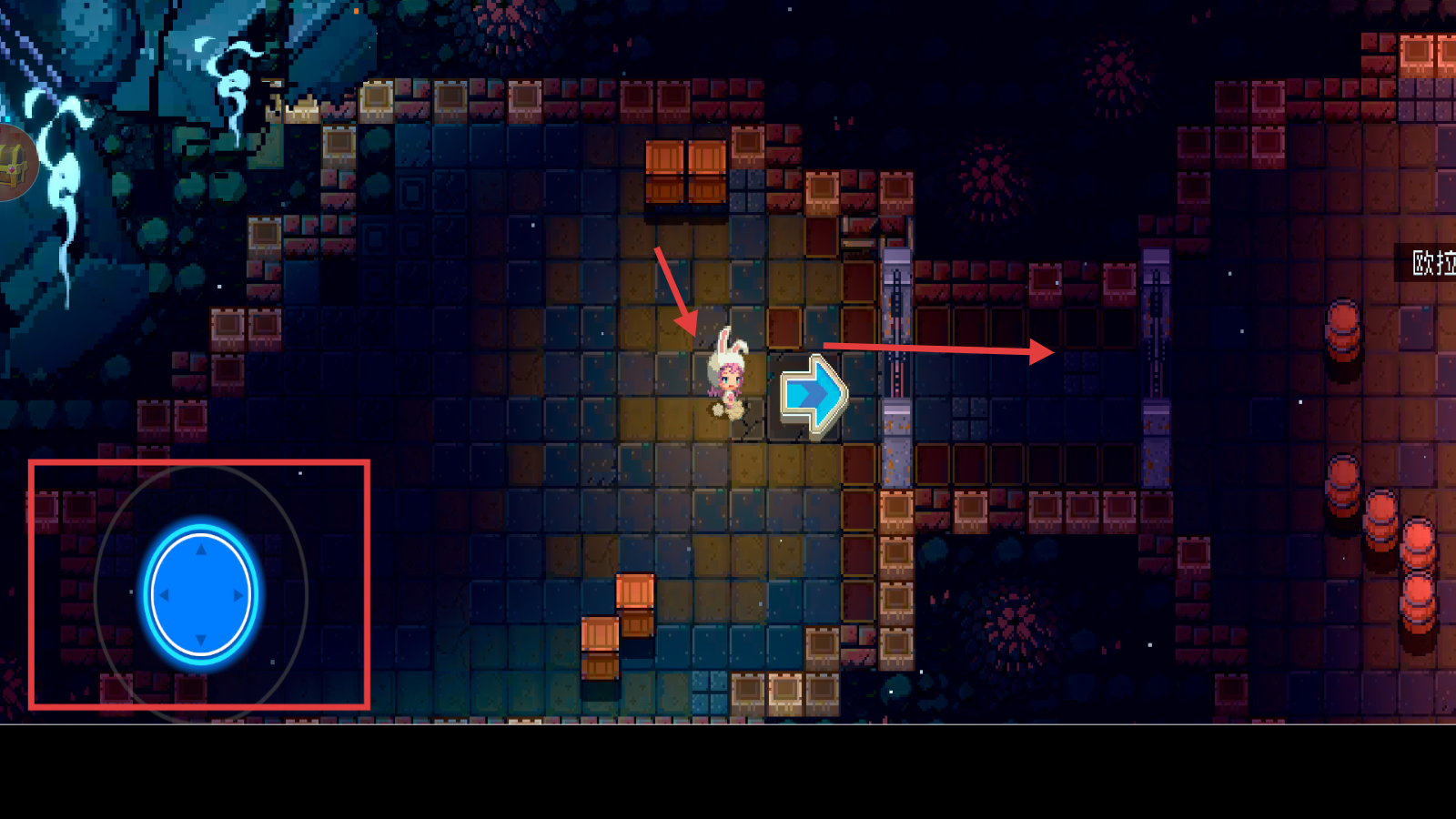 2、通过左下角摇杆操控角色移动,跟随箭头指示方向前进。