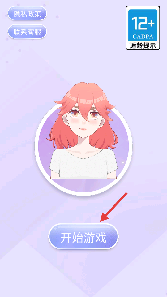 1、游戏初始界面有【开始游戏】按钮,点击可进入角色装扮页面。