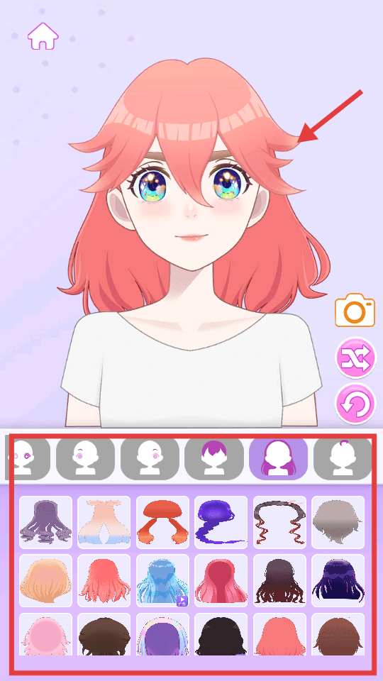 2、在装扮页,下方有多种发型等装饰选项,可挑选喜欢的发型来装饰角色。