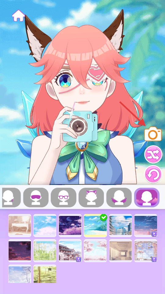 3、选好角色装饰后,点击右侧相机图标,可进行拍照。