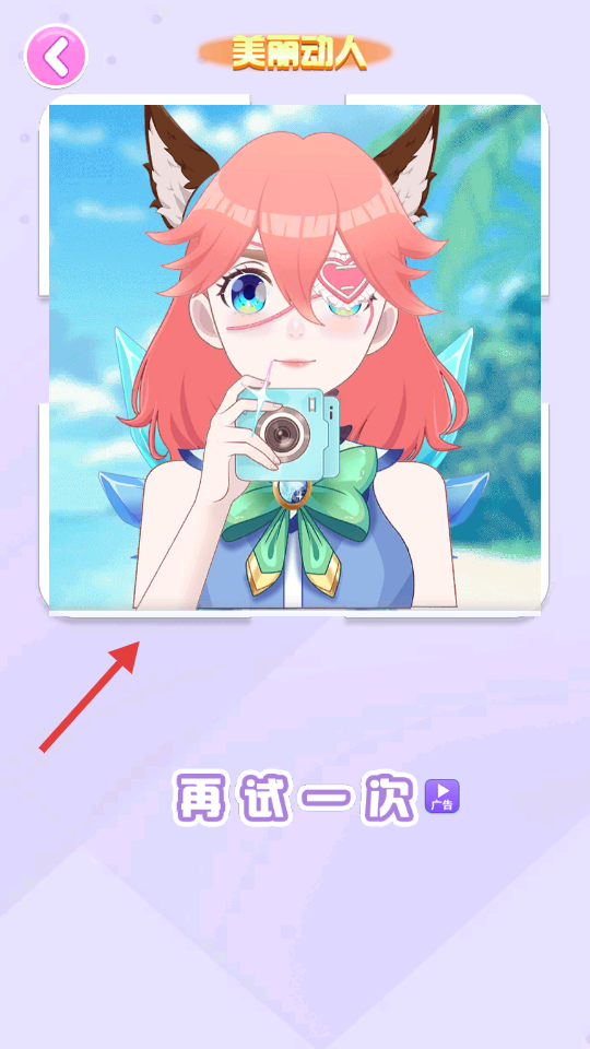 4、拍照后会生成装扮照片,能查看成果,也可点击【再试一次】重新装扮。