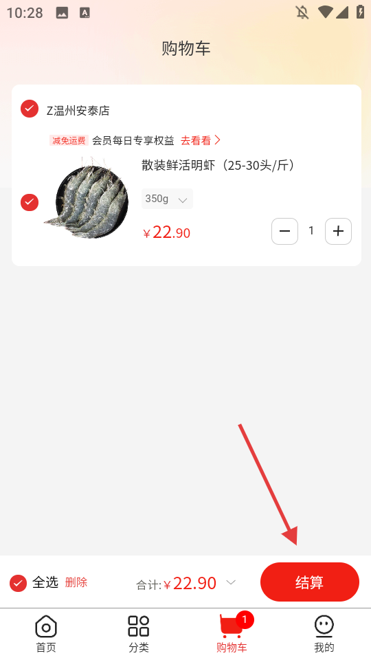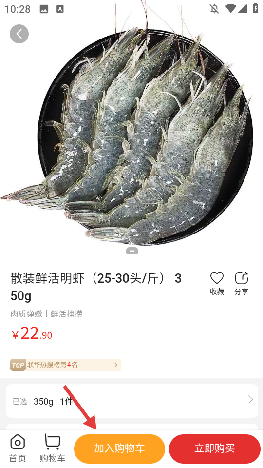 1、进入想要购买的商品详情页,点击【加入购物车】。