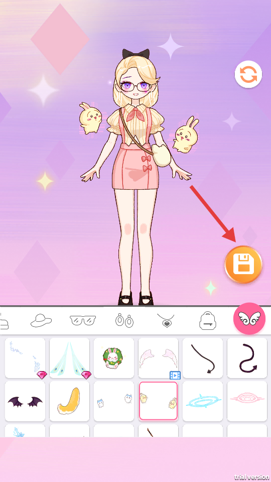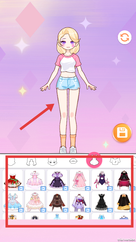 2、在界面下方选择各类服装、配饰等,为角色搭配造型。