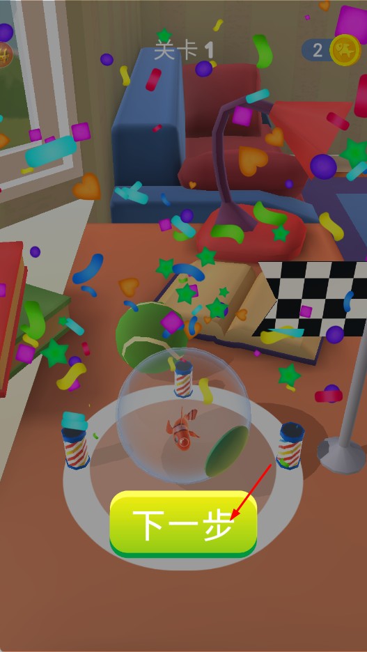 4、成功到达终点后,点击【下一步】按钮,继续挑战后续关卡。