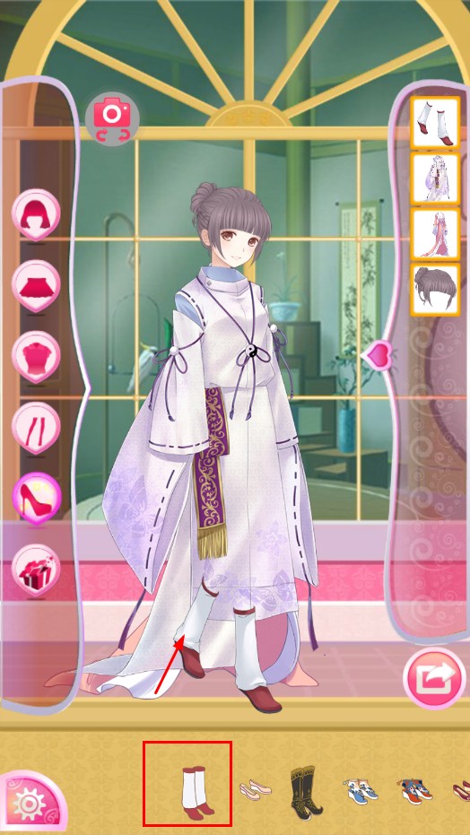 4、最后在鞋类栏选喜欢的古风鞋袜,点击为角色更换鞋袜,完成整套古风装扮。
