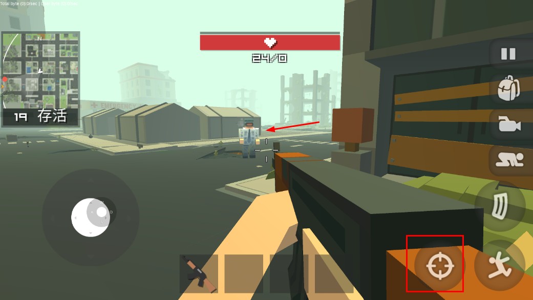 3、遇到敌人时,点击右侧瞄准图标,瞄准后射击,击败对手,提升排名。