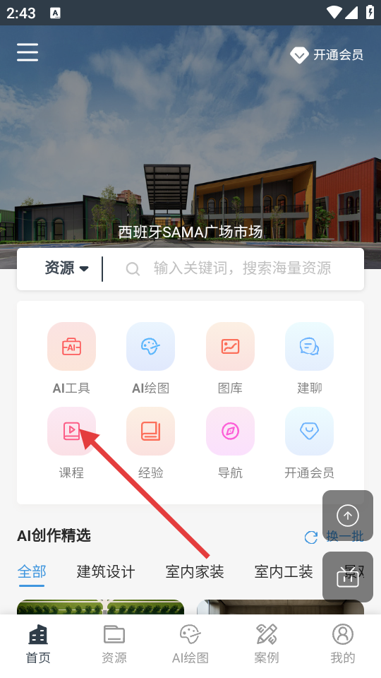 2、在首页,点击【课程】,进入课程页面。