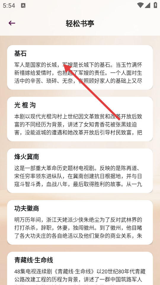 3、在轻松书亭页面,选择想要查看的书籍(如《基石》)。