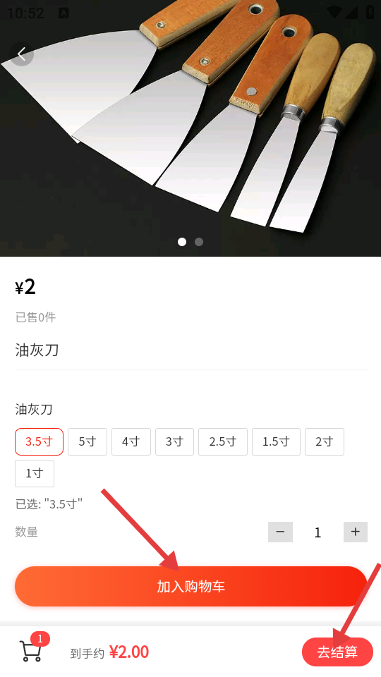 3、选择商品规格,点击【加入购物车】,再点击【去结算】。