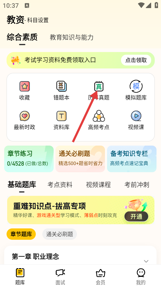 1、完整收录近十年教师资格考试真题与模拟试题,按照教育知识与能力、综合素质等考试科目进行分类,每题附带视频解析。