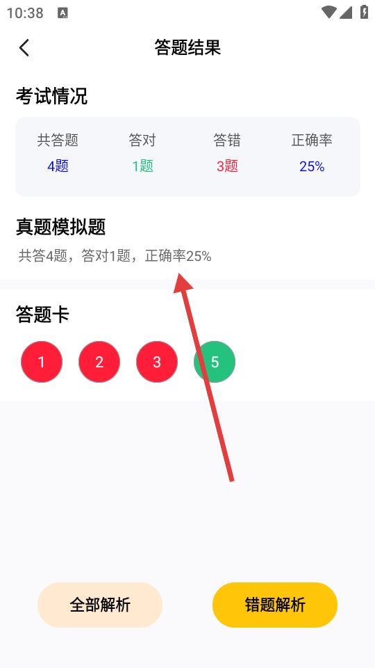 4、答题完成后,在答题结果页面可查看共答题数、答对答错数、正确率等考试情况。