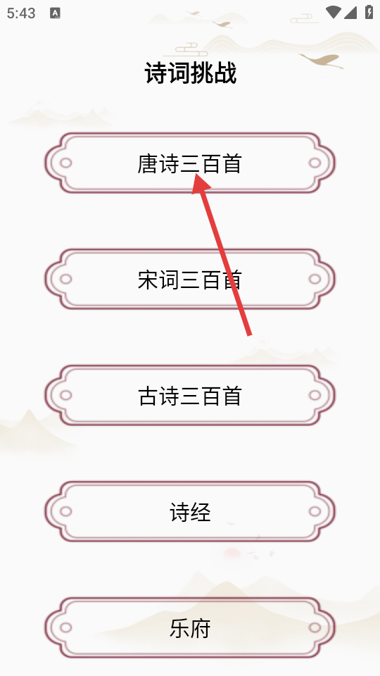 3、在诗词挑战分类中选择【唐诗三百首】类别,进入对应挑战。