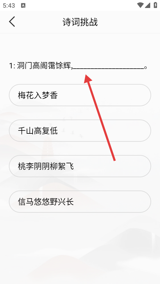 4、进入后即可参与诗词填空挑战,根据题目选择正确答案完成答题。