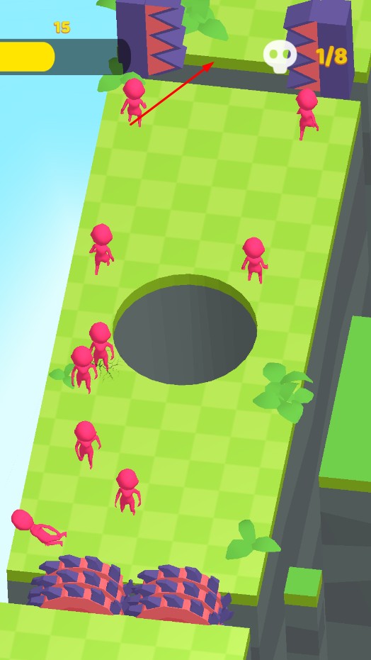 3、阻止粉色小人向带有尖刺的紫色障碍物地区逃脱。
