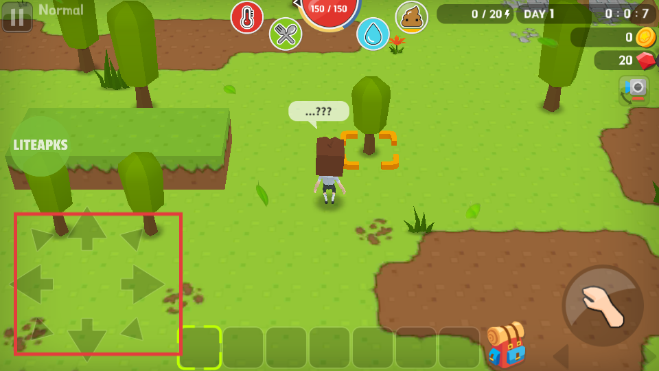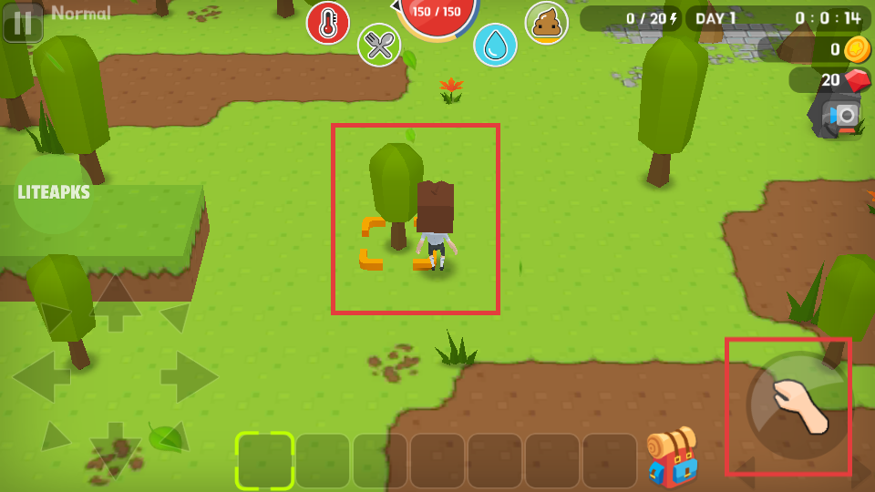 4、使用右下角互动按钮,控制角色伐木收集木头,推进游戏进度。