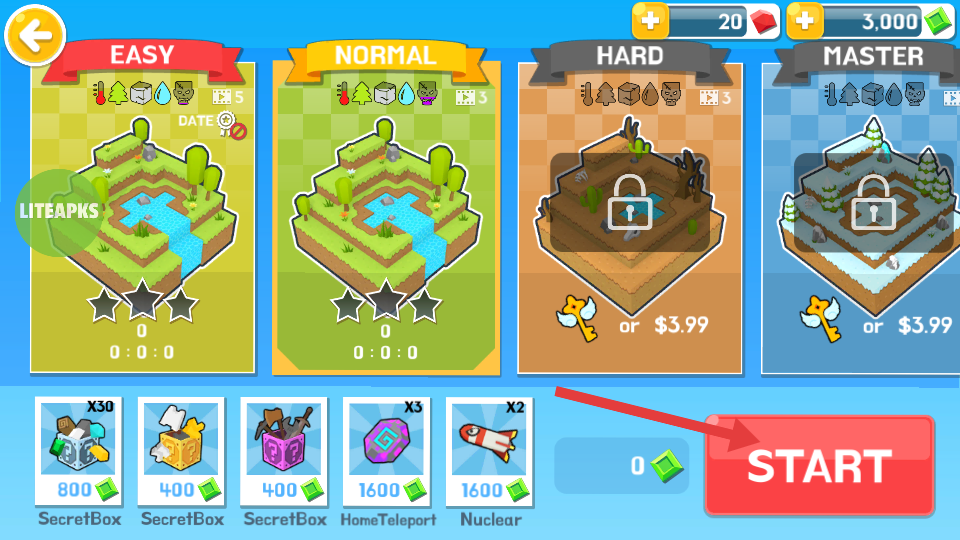 2、选择难度后点击【START】,进入游戏场景,开始冒险。