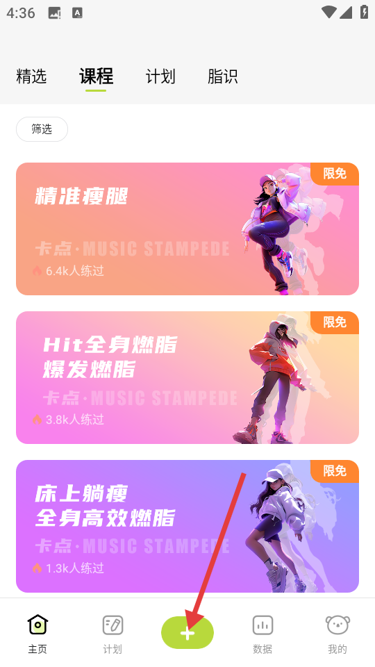 1、在底部导航栏,点击绿色加号图标,进入记录页面。