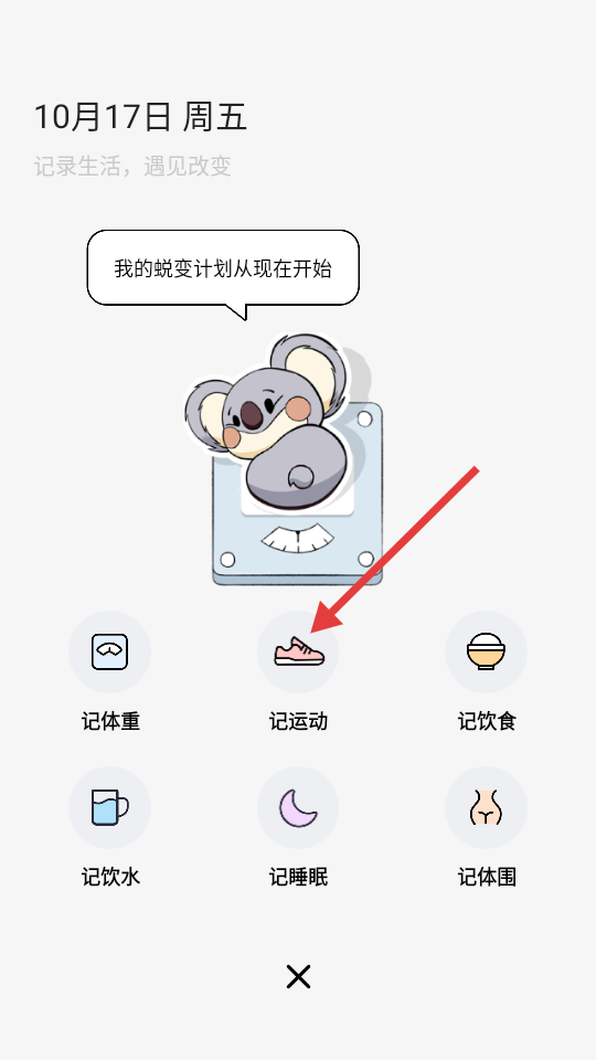2、在记录页面,点击【记运动】选项,进入记运动页面。