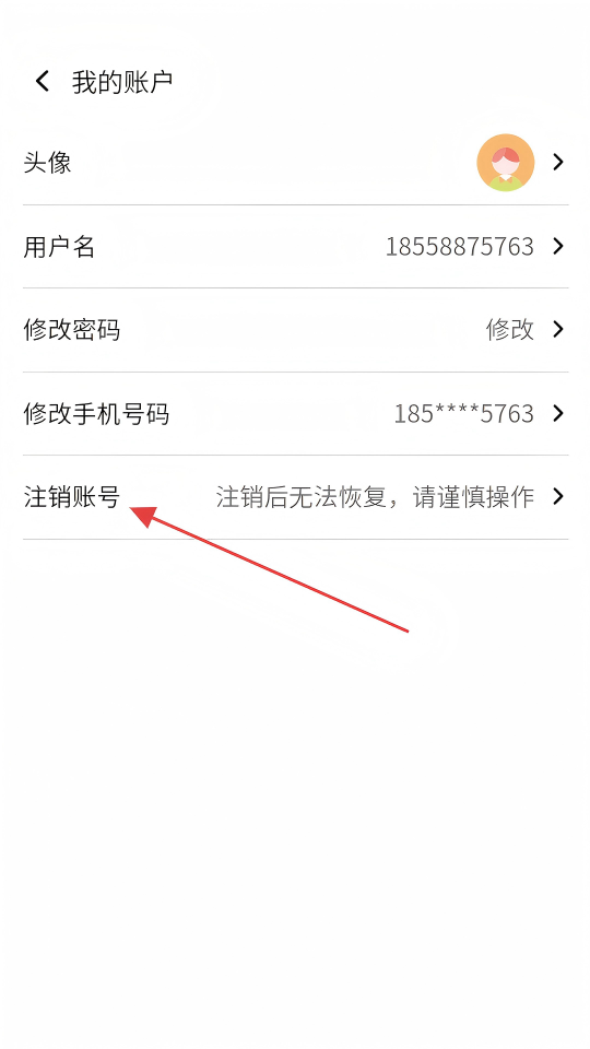 3、在【我的账户】页面,点击【注销账号】,进入注销账户说明页面。