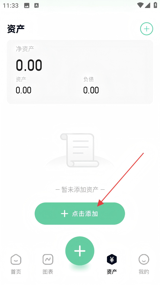 2、在资产页面,点击【+点击添加】,进入记账类别选择页面。