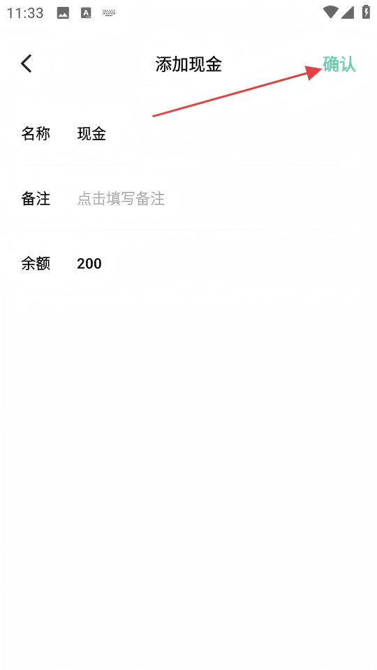 4、在添加现金页面,设置余额等信息后,点击【确认】,完成现金资产的添加。