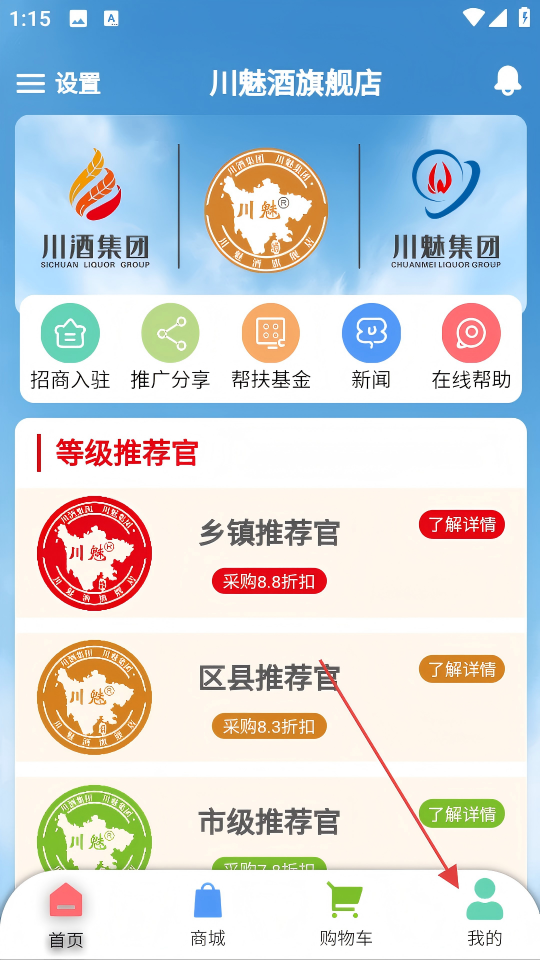 川魅酒旗舰店是一款集招商入驻、商城购物、帮扶基金于一体的酒类专属购物工具,核心聚焦酒类商品交易与加盟服务。用户可在商城中心轻松查找各类酒类商品,从选购到下单全程便捷,且所有商品保障正品,让用户放心购入高品质好酒;同时平台全面展示乡镇、县区、市级、省级推荐官信息,方便用户了解详情并按所在区域选择加盟。