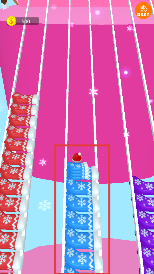 3、优先收集同色的【蓝色-雪花-袜子】,沿着对应路径前进,避免偏离赛道。
