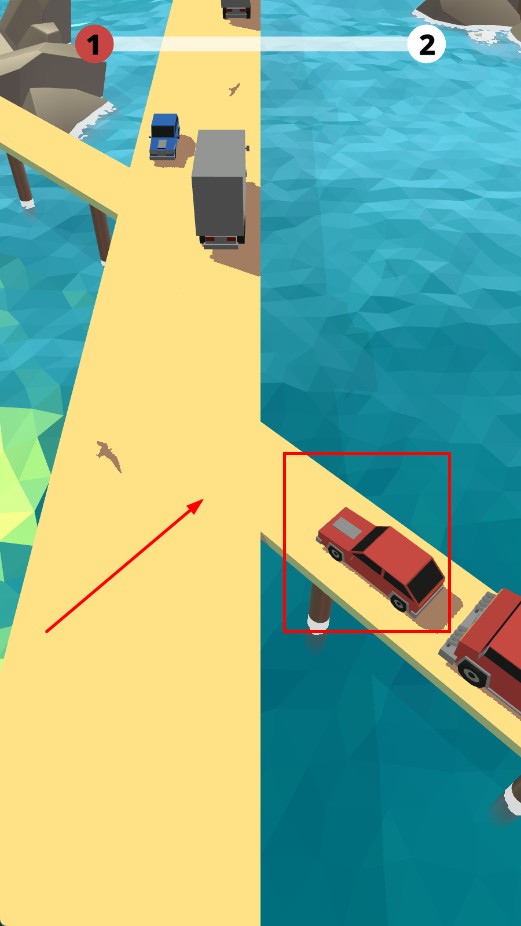 2、操控车辆,在主干道没车的时候,看准时机点击右侧红色车辆所在车道汇入主路。