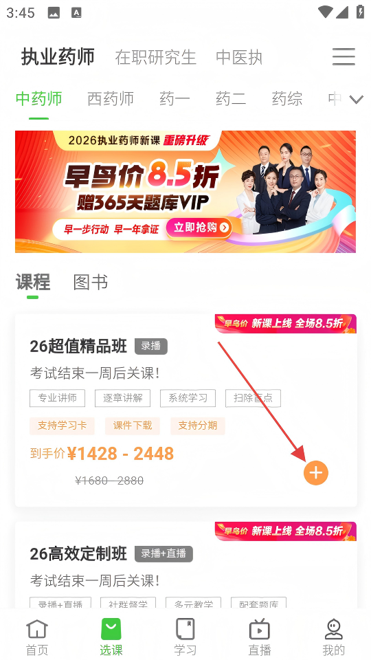 2、在选课页面,选择想要报名的课程,点击课程旁的加号图标。